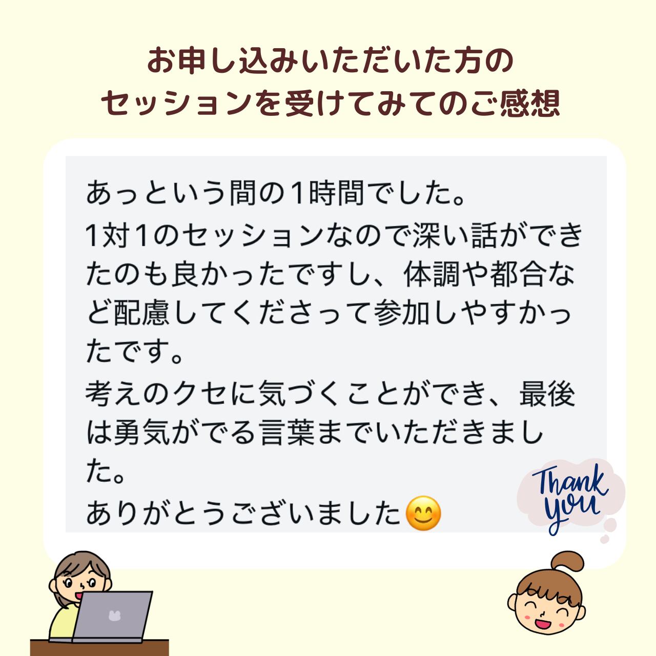 ♪悩みや思いを受けとめてもらえて心が軽くなる